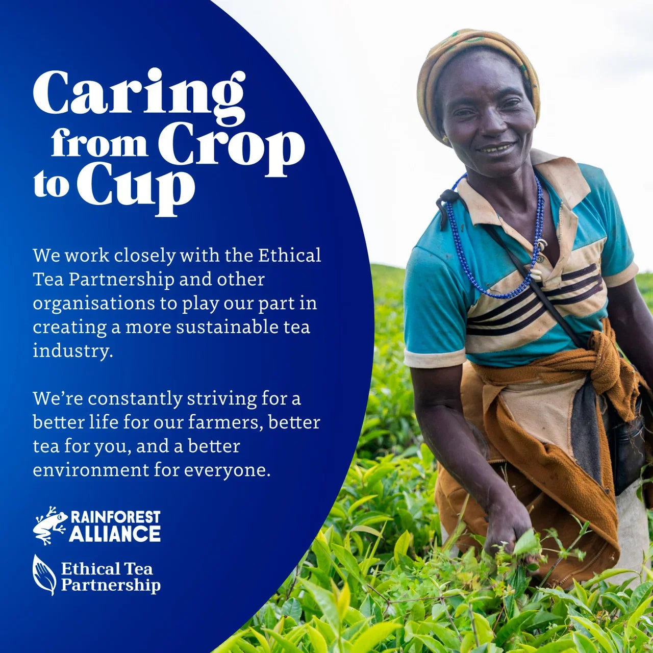 A classic, comforting black tea with a smooth, refreshing taste. Tetley’s round tea bags are expertly blended from carefully selected leaves and quality-checked at every stage. Made using Rainforest Alliance Certified tea.